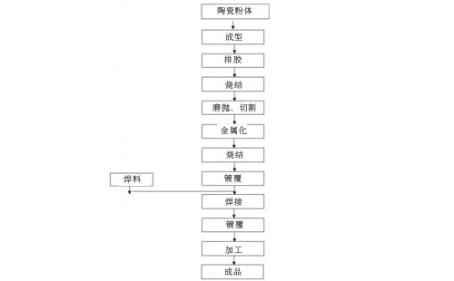 為了降低成本,實現(xiàn)規(guī)模化生產(chǎn),需要開發(fā)新型制備方法。下圖是一種新型陶瓷封裝管殼制備的工藝流程,可以解決現(xiàn)有制備方法中的技術(shù)問題。